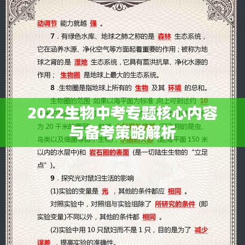 随着教育改革的深入推进,生物学科在中考中的地位日益凸显,对于即将参加2022年生物中考的同学们来说,了解中考专题的核心内容,掌握有效的备考策略至关重要,本文将围绕“生物中考专题2022”展开,帮助同学们更好地应对考试。